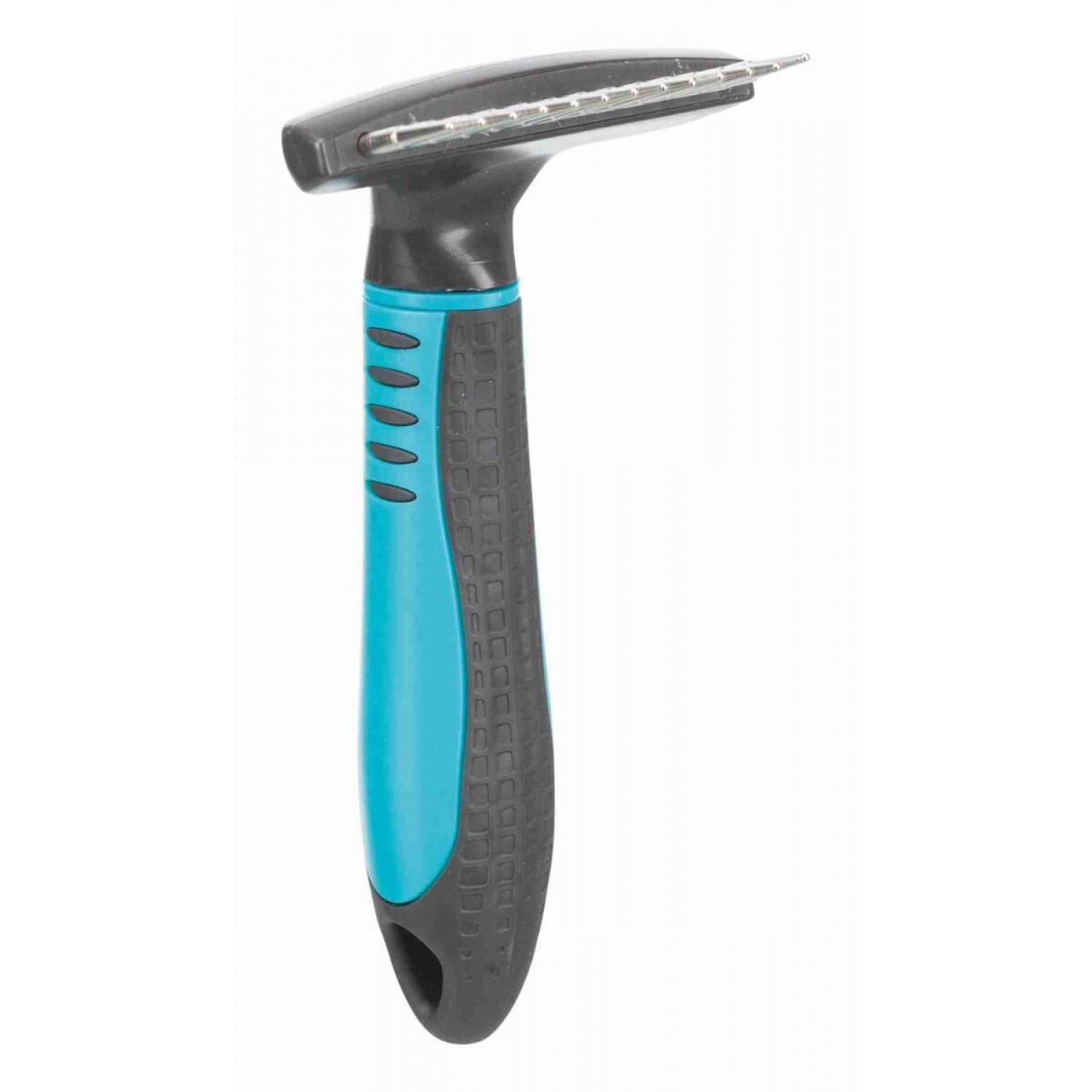 Расческа-грабли с закругленными короткими зубцами, вращающимся вокруг своей оси, разработанная специалистами компании Trixie (Трикси), предназначена для деликатного ухода за шерстью и подшерстком собак с косматой шерстью и длинношерстных собак.
