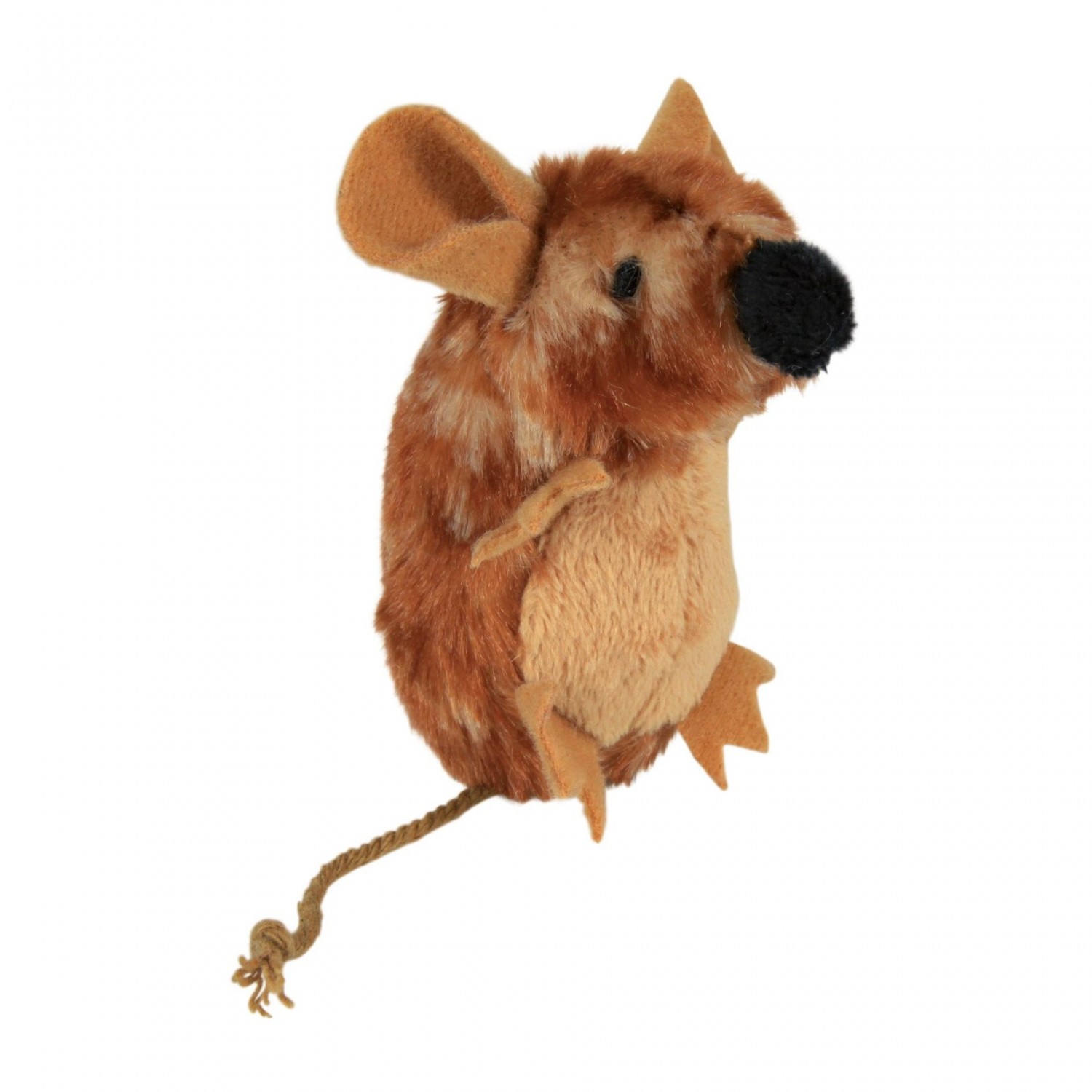 Trixie игрушка для кошек Мышка плюшевая с пищалкой коричневая.