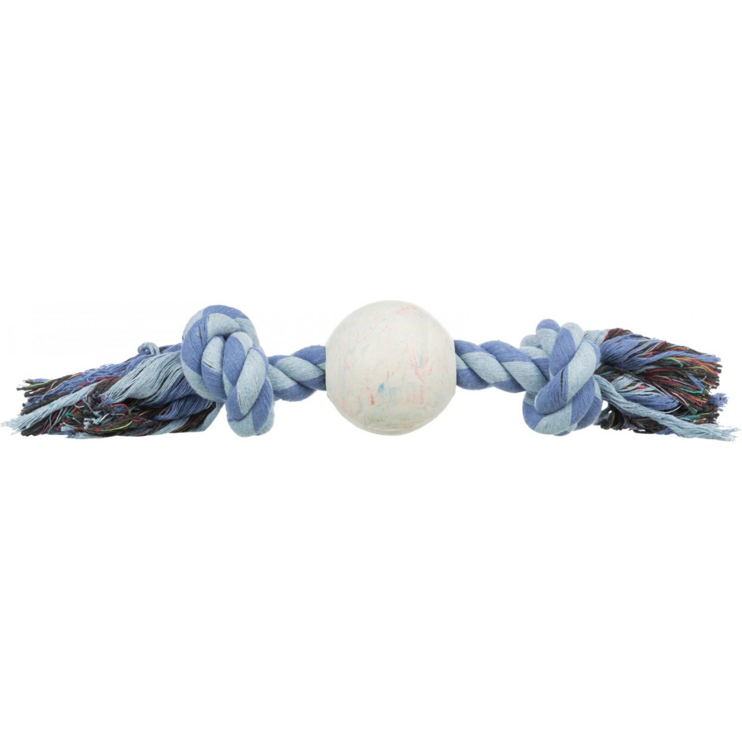 Каждый любящий хозяин желает, чтобы его питомец был счастливый и жизнерадостный. Производитель Trixie полностью солидарен с таким положением вещей, а потому предлагает свою разработку Игрушка для собак Trixie Канат плетёный с мячом 36 см, d:7 см (текстиль), способную развивать вашего питомца и дарить ему хорошее настроение.
