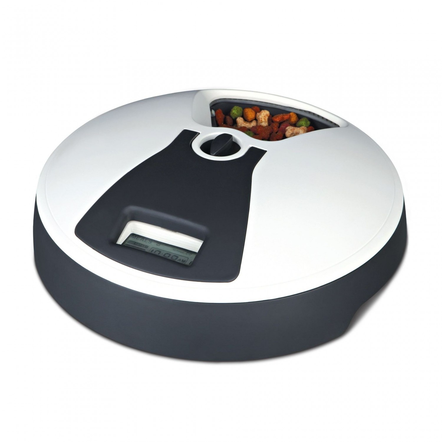 Эффективным, удобным и практичным аксессуаром, позволяющим своевременно кормить домашнего питомца, является кормушка автомат. "ТХ 6" круглая, представлена известным немецким производителем зоотоваров Трикси. Изготовлена из высококачественного пластика, безопасного для здоровья животных. Современная кормушка может программироваться для кормления до трех раз в день, рассчитанная на шесть порций по 240 мл, подходит для влажного корма за счет наличия аккумулятора холода, расположенного под емкостью для кормления. Конструкция оснащена дисплеем, отображающим уровень заряда, работающим от батареек.