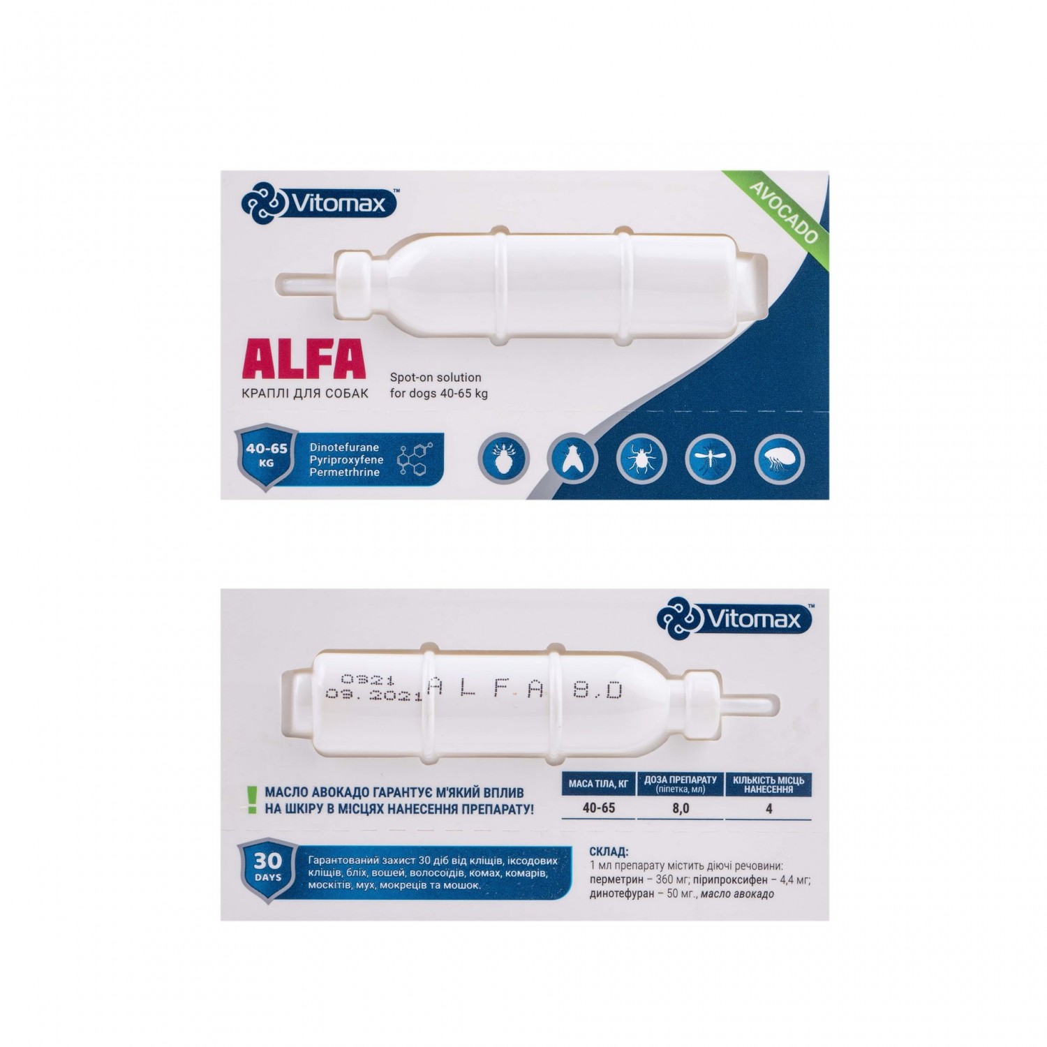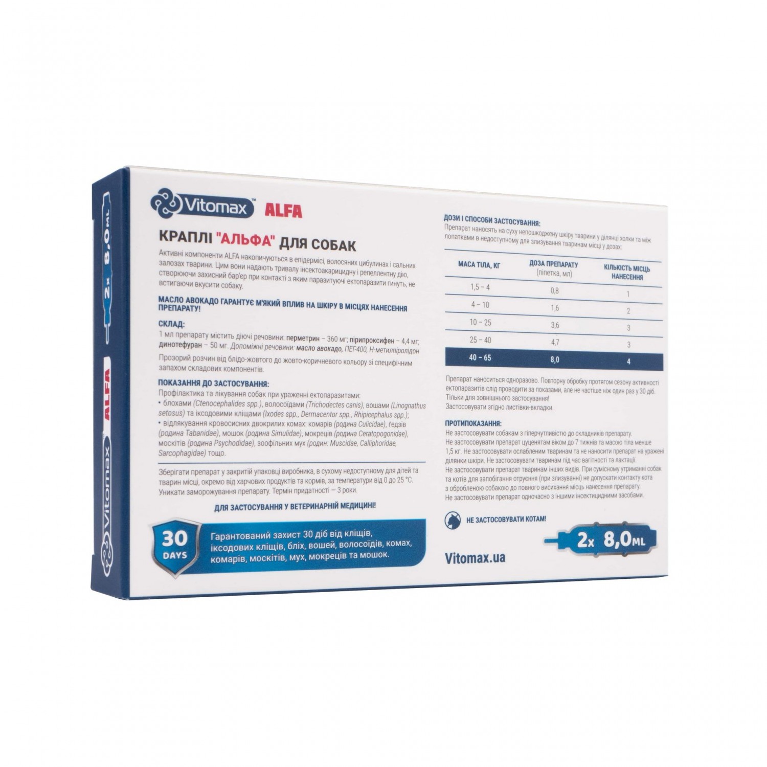 Vitomax (Витомакс) Alfa капли для собак от 40 до 65 кг. 8.0мл
