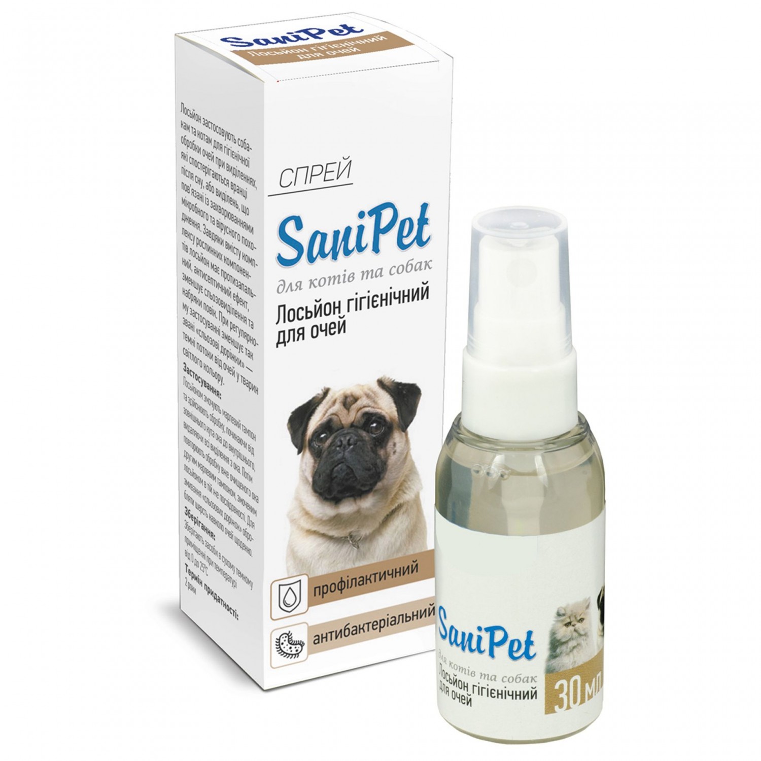 SaniPet лосьйон спрей для догляду за очима у собак та котів 30 мл