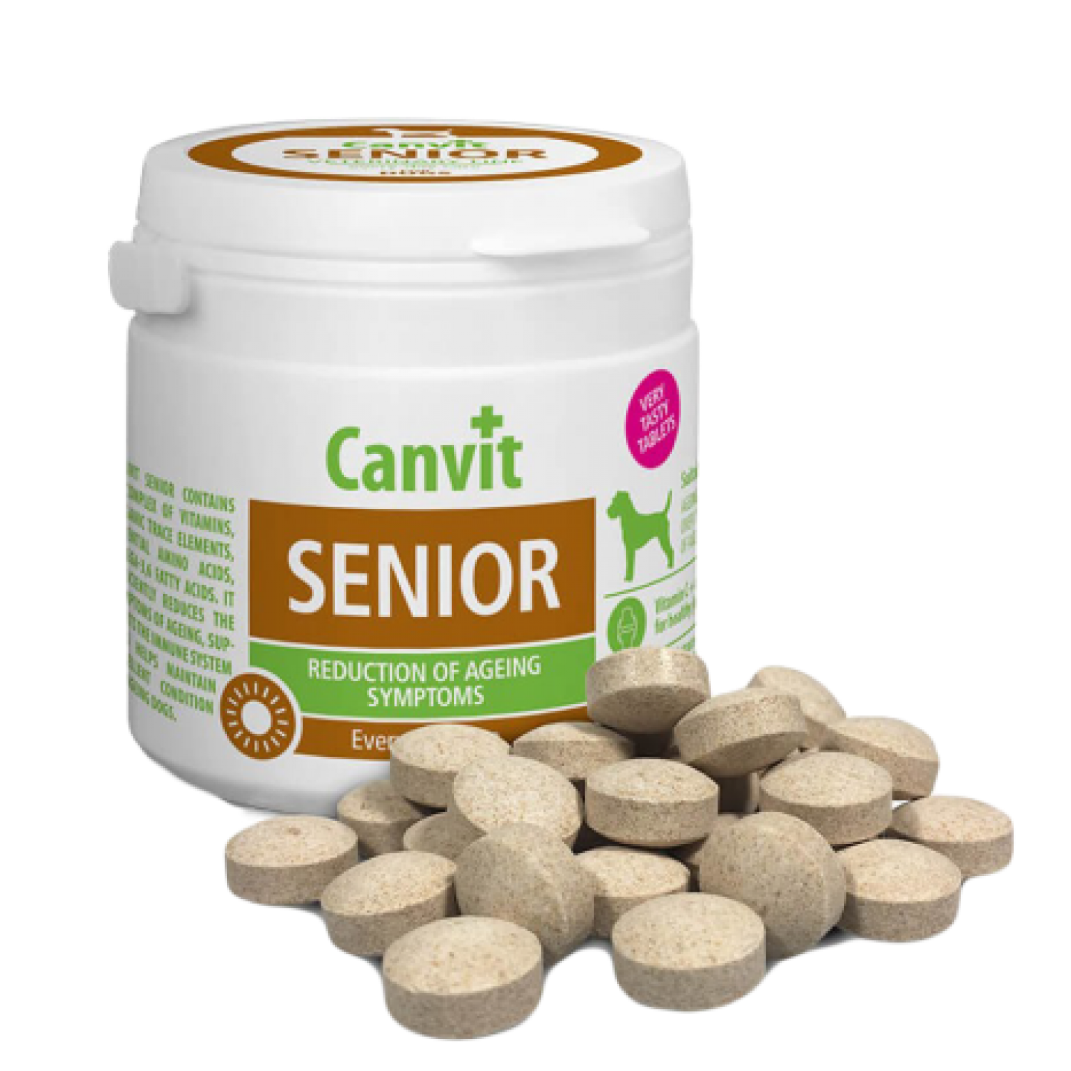 Комплекс вітамінів Canvit Senior необхідний для уповільнення процесів старіння і підтримки загального здоров'я та активності собак старше 7 років. Канвіт Сеньйор містить комплекс вітамінів, мікроелементів органічній хелатовій формі, незамінних амінокислот та поліненасичених жирних кислот Омега-3,6. Ефективно уповільнює ознаки старіння, підтримує імунну систему, забезпечує відмінну кондицію, та допомагає підтримувати м’язову масу. Підвищений вміст антиоксидантів попереджає старіння.