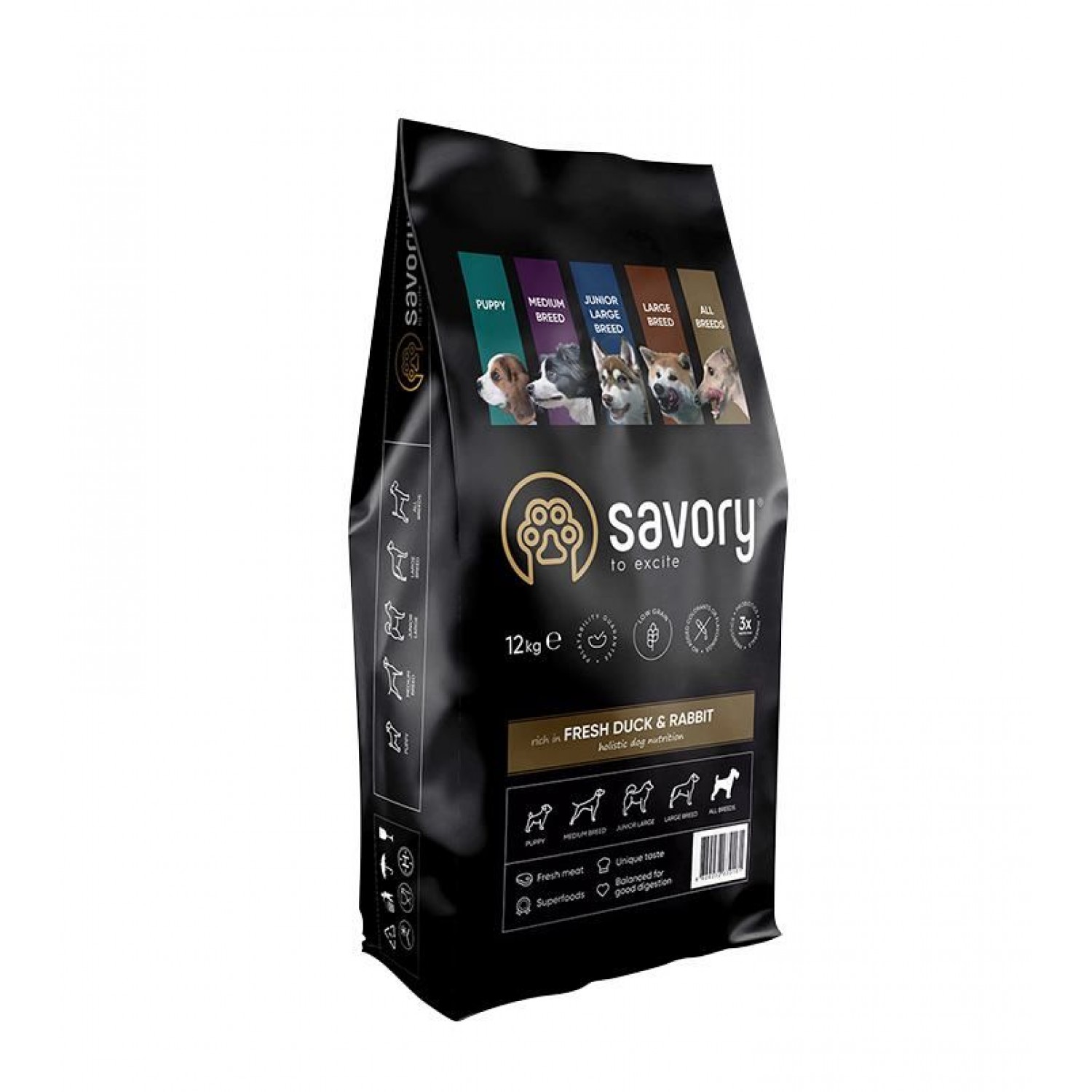 Сухий корм для собак усіх порід Savory містить якісне м’ясо качки та кролика, суперфуди, яблука, гарбуз і куркуму.  Ці компоненти створені природою для оптимальної кондиції, здорових суглобів і розкішного вигляду песика.
