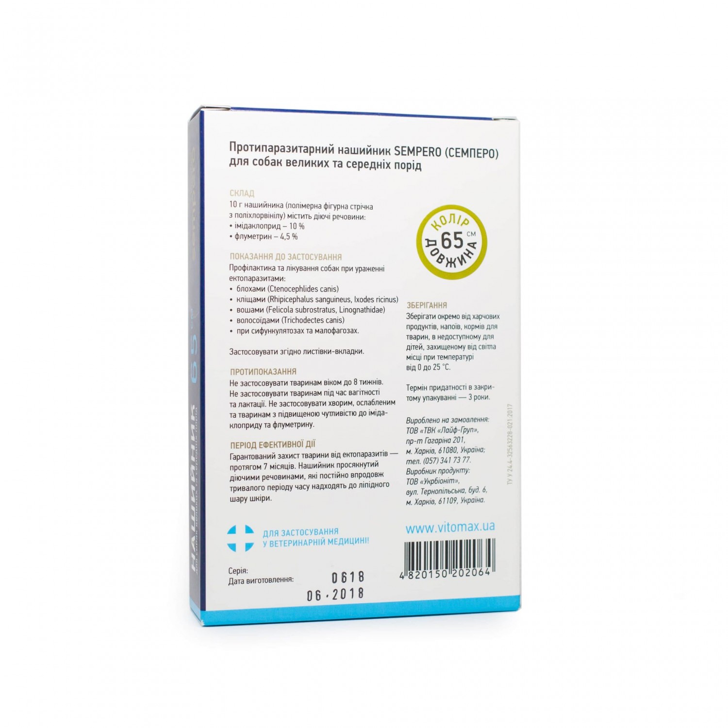 Забезпечує тривалий захист впродовж приблизно 7 місяців, після чого рекомендується замінити нашийник на новий.