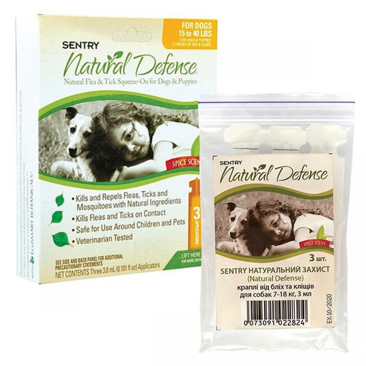 Sentry Natural Defense - краплі від бліх, кліщів, комарів для собак та цуценят. Засіб виготовлений на основі натуральних інгредієнтів і здатний швидко позбавити вашого вихованця від ектопаразитів і запобігти повторному зараженню ними. Краплі на холку від бліх, кліщів та комарів для собак та цуценят.
