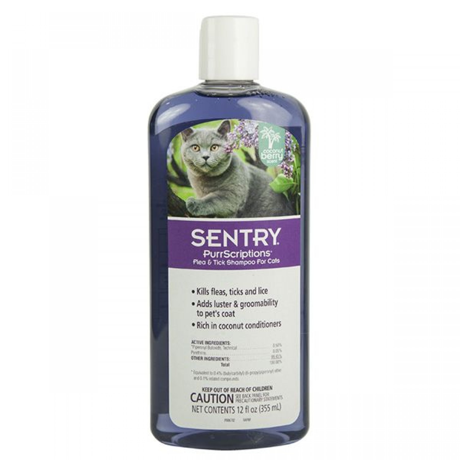 Sentry PurrScriptions Coconut Berry шампунь від бліх та кліщів для котів з ароматом кокосу.