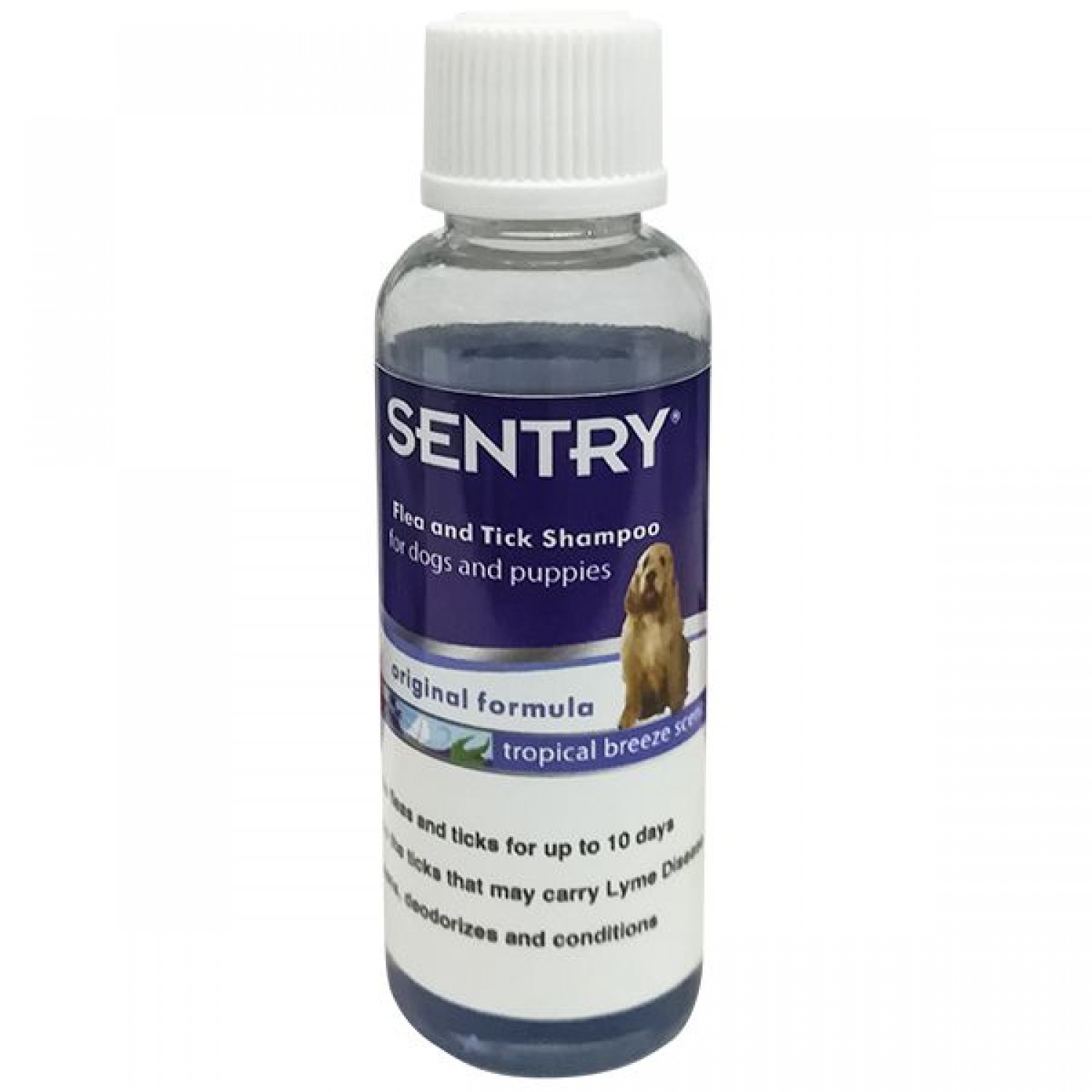 Шампунь від бліх та кліщів для собак та цуценят Sentry Tropical Breeze вбиває бліх та кліщів на строк до 10 днів. У тому числі, вбиває кліщів, які можуть бути переносниками хвороби Лайма, завдяки наявності у складі високоефективних інгредієнтів.