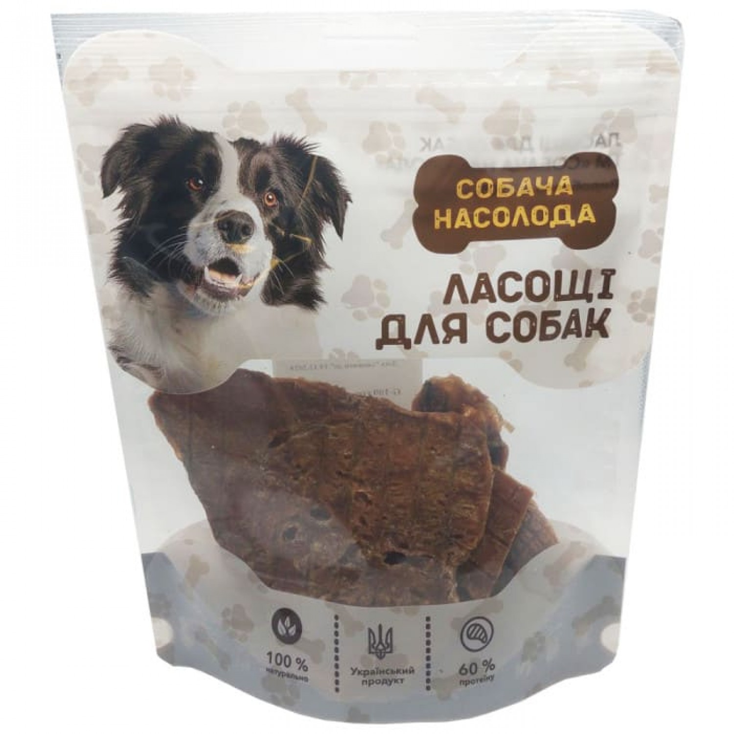 ТМ «Собача насолода» пропонує різноманітні смачні та корисні ласощі, створені спеціально для задоволення потреб ваших чотирилапих друзів. Ласощі виготовлені з високоякісних натуральних інгредієнтів, що забезпечують здоров’я та радість ваших собак.