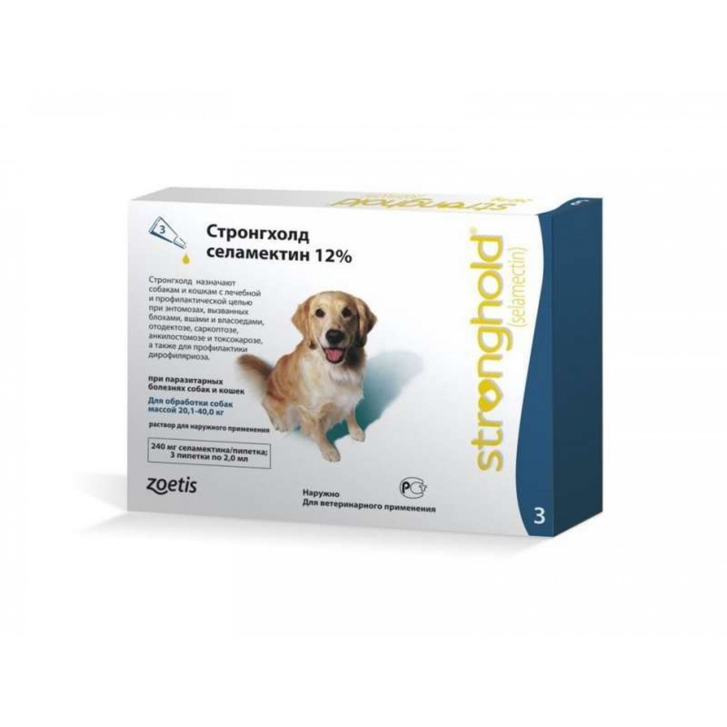 Stronghold протипаразитарні краплі для собак широкого спектра дії.