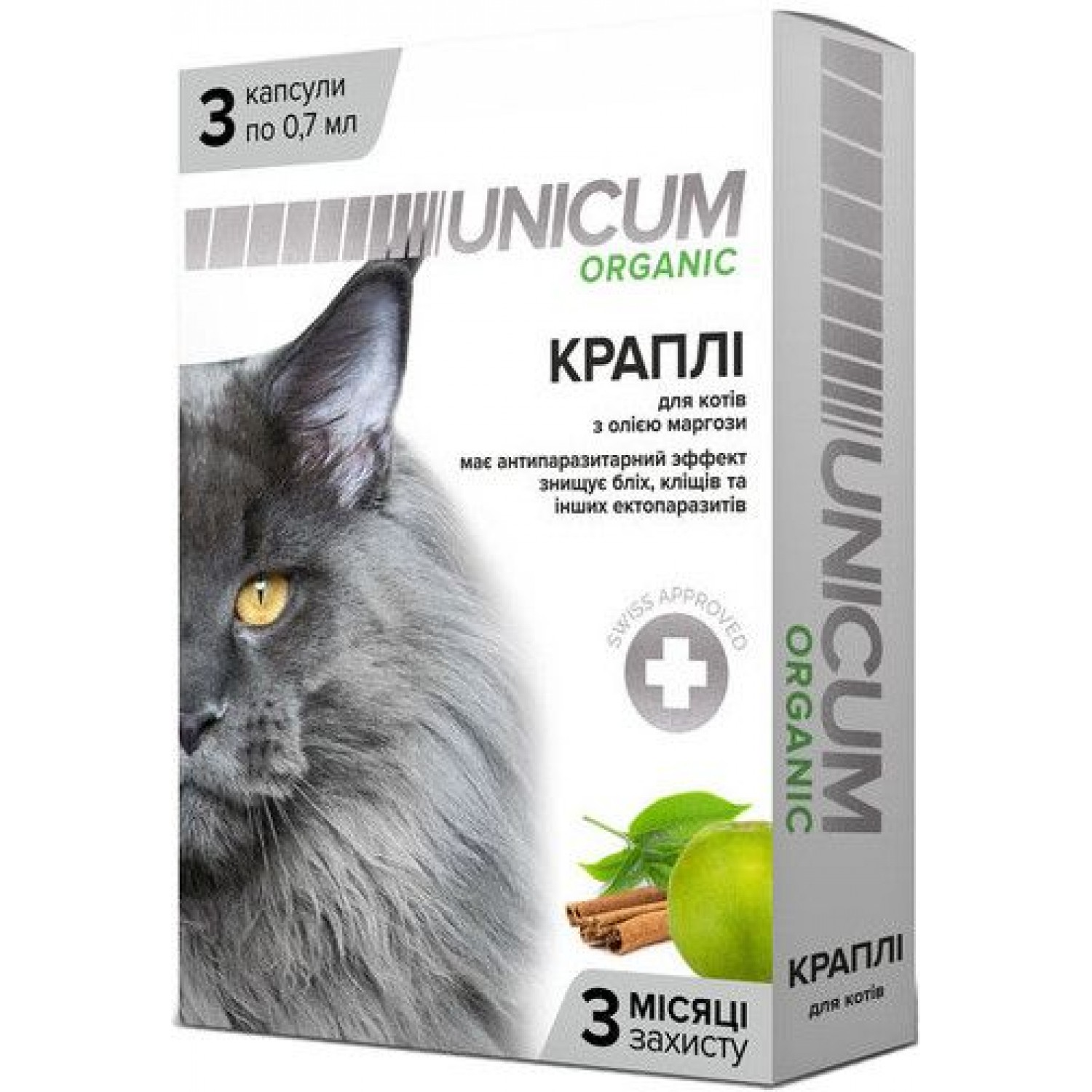 Unicum ORGANIC краплі на натуральній основі для відлякування бліх та кліщів для котів.