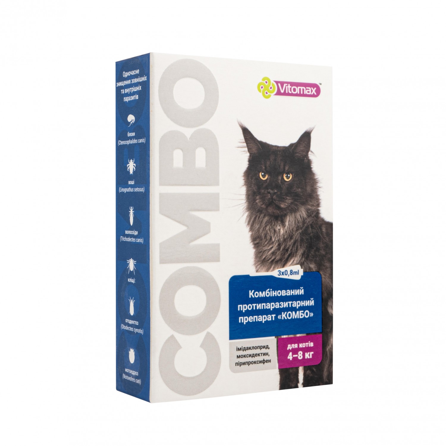 Vitomax Combo краплі від екто- та ендо-паразитів для котів від 4 до 8 кг.