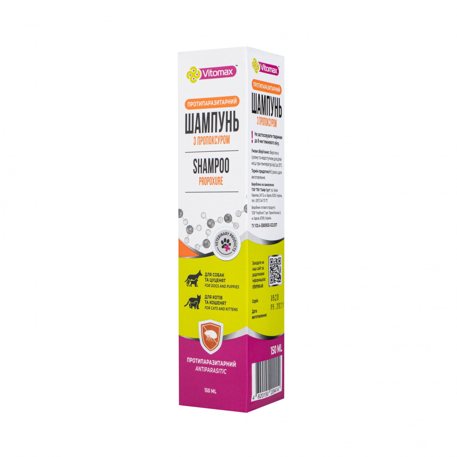 Vitomax протипаразитарний шампунь з пропоксуром для котів та собак.