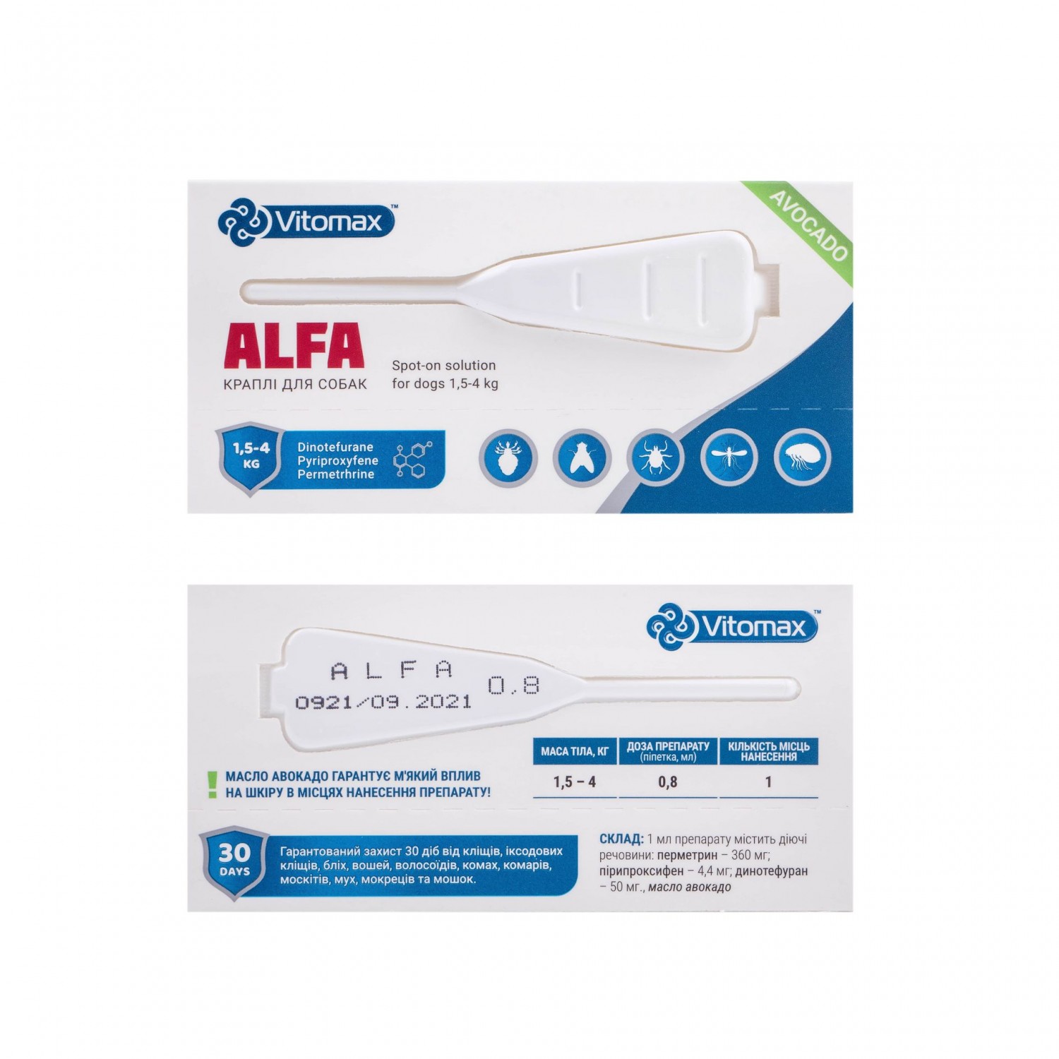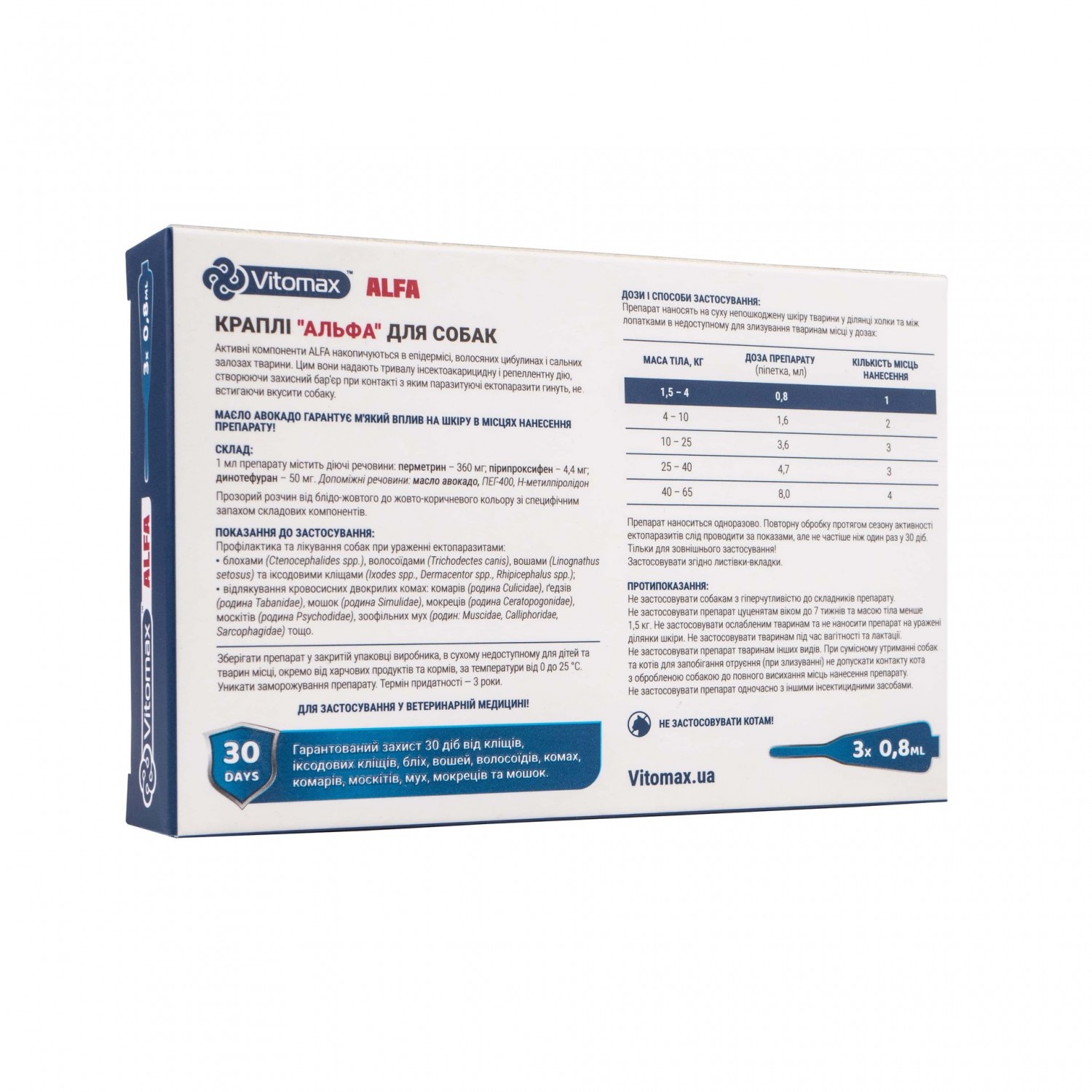 Vitomax (Вітомакс) Alfa краплі на холку для собак від 1.5 до 4 кг. 0.8мл