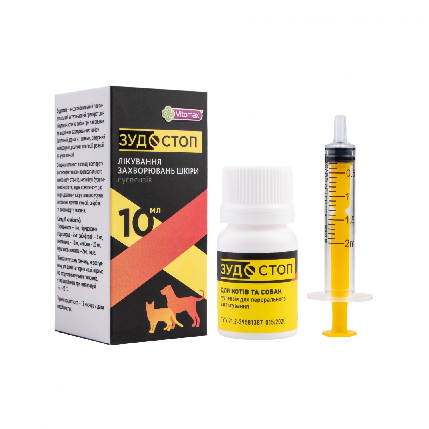 Високоефективний гормональний ветеринарний препарат Зудостоп призначений для лікування при запальних та алергічних захворюваннях шкіри (атопічний дерматит, екзема, дифузний нейродерміт, розчухи, алопеції, реакції на укуси комах).