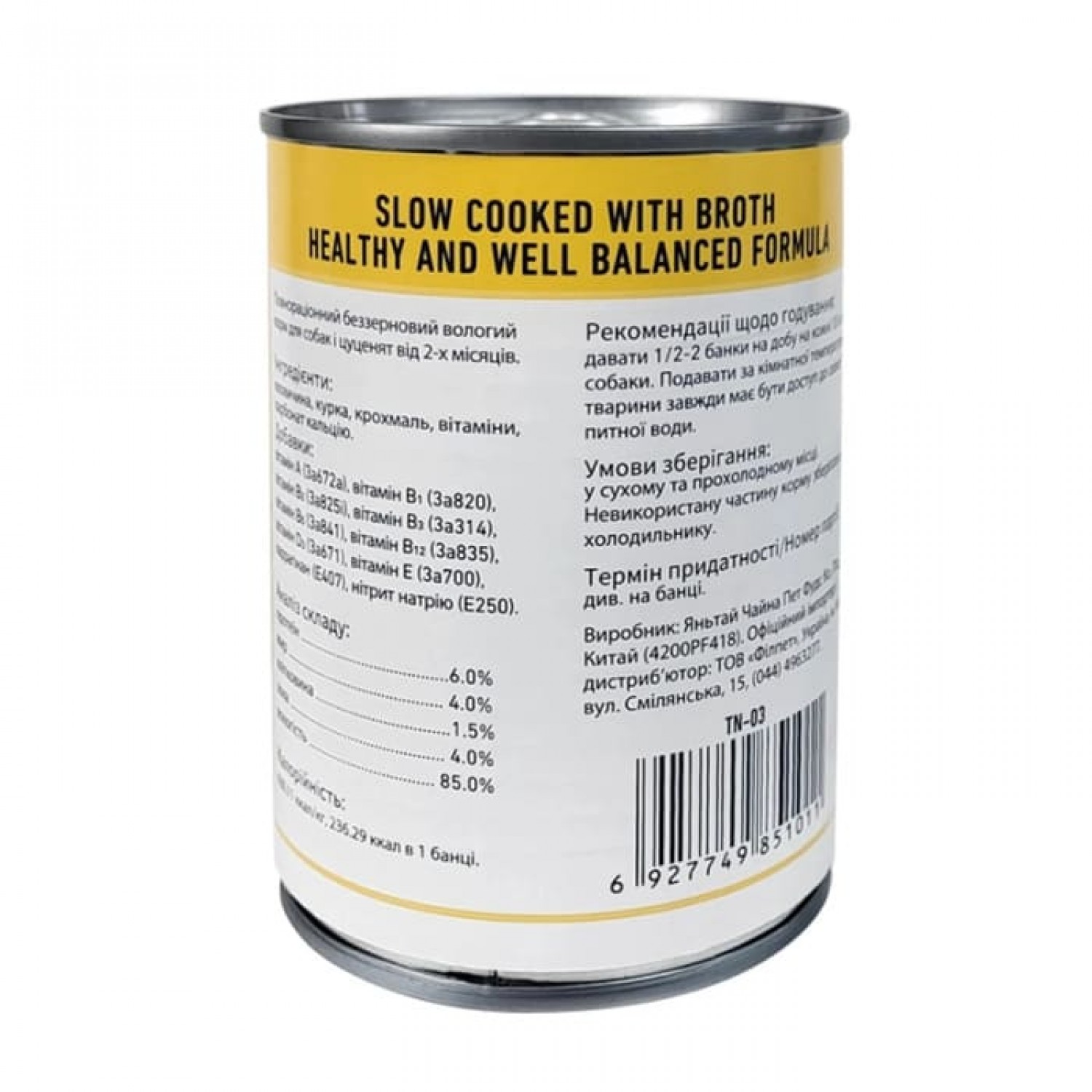 Ніжна текстура паштету робить корм легким для поїдання, що дуже важливо для цуценят і собак із чутливими зубами або яснами, сприяє кращому травленню та засвоєнню, що знижує навантаження на травну систему.