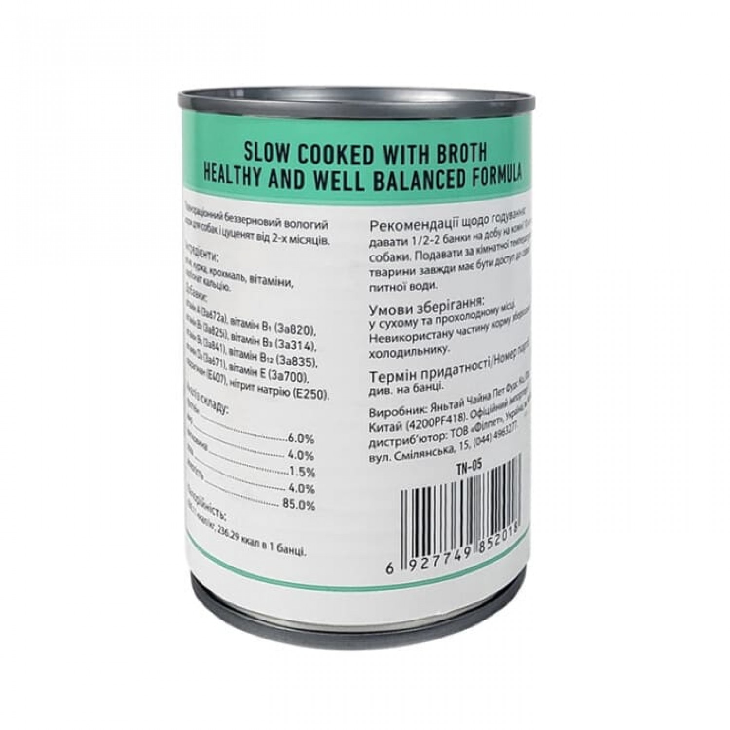 Ніжна текстура паштету робить корм легким для поїдання, що дуже важливо для цуценят і собак із чутливими зубами або яснами, сприяє кращому травленню та засвоєнню, що знижує навантаження на травну систему.
